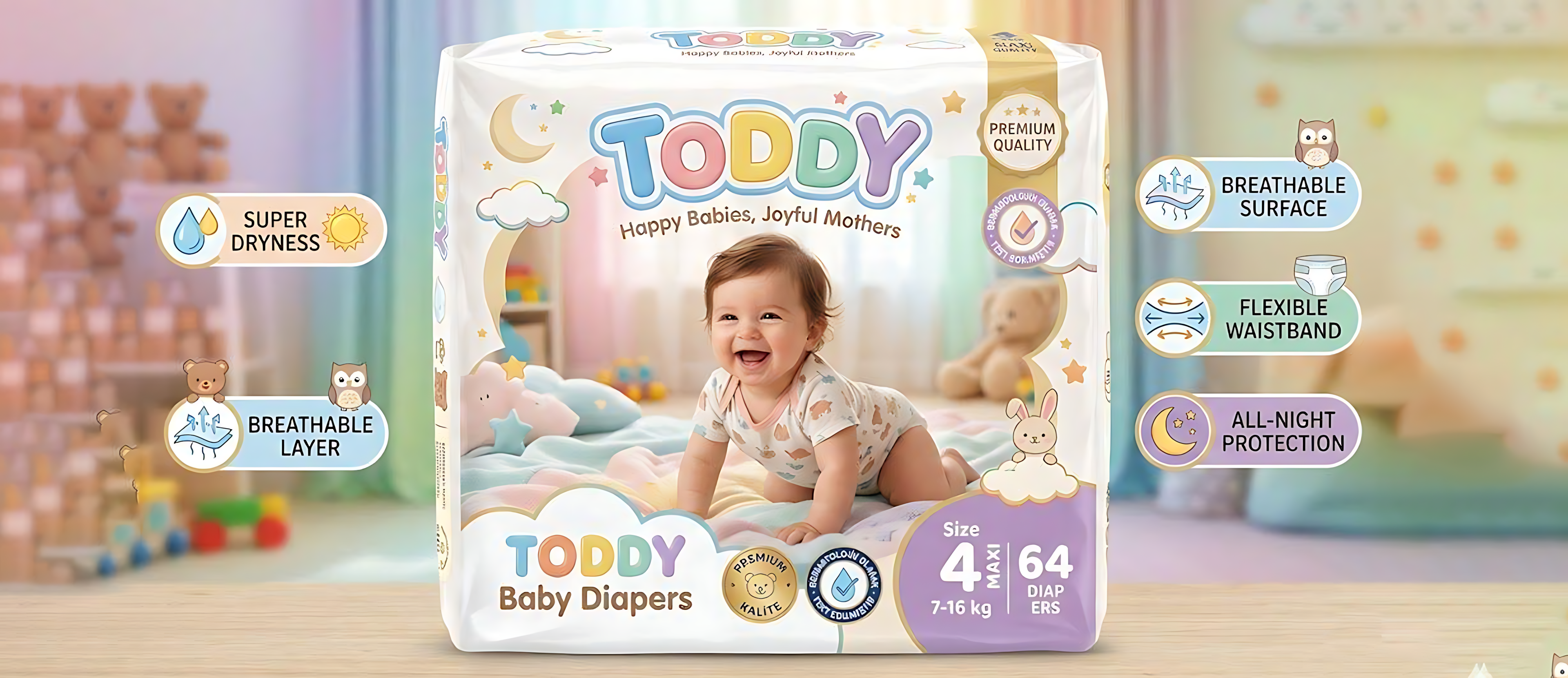 Değerlerimiz: Hijyen, inovasyon ve sürdürülebilirlik. Bebeklerimizin cildine dokunan her lifte yüksek kalite standartlarımızı koruyoruz.